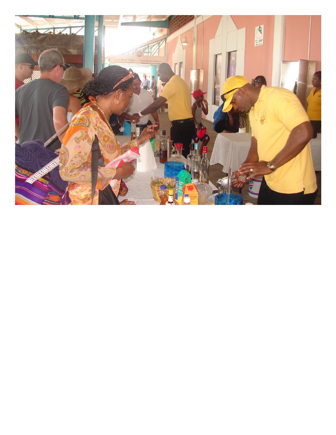 Cruise visitors mixing their own cocktails at the monthly mixology event during the Winter cruise season.